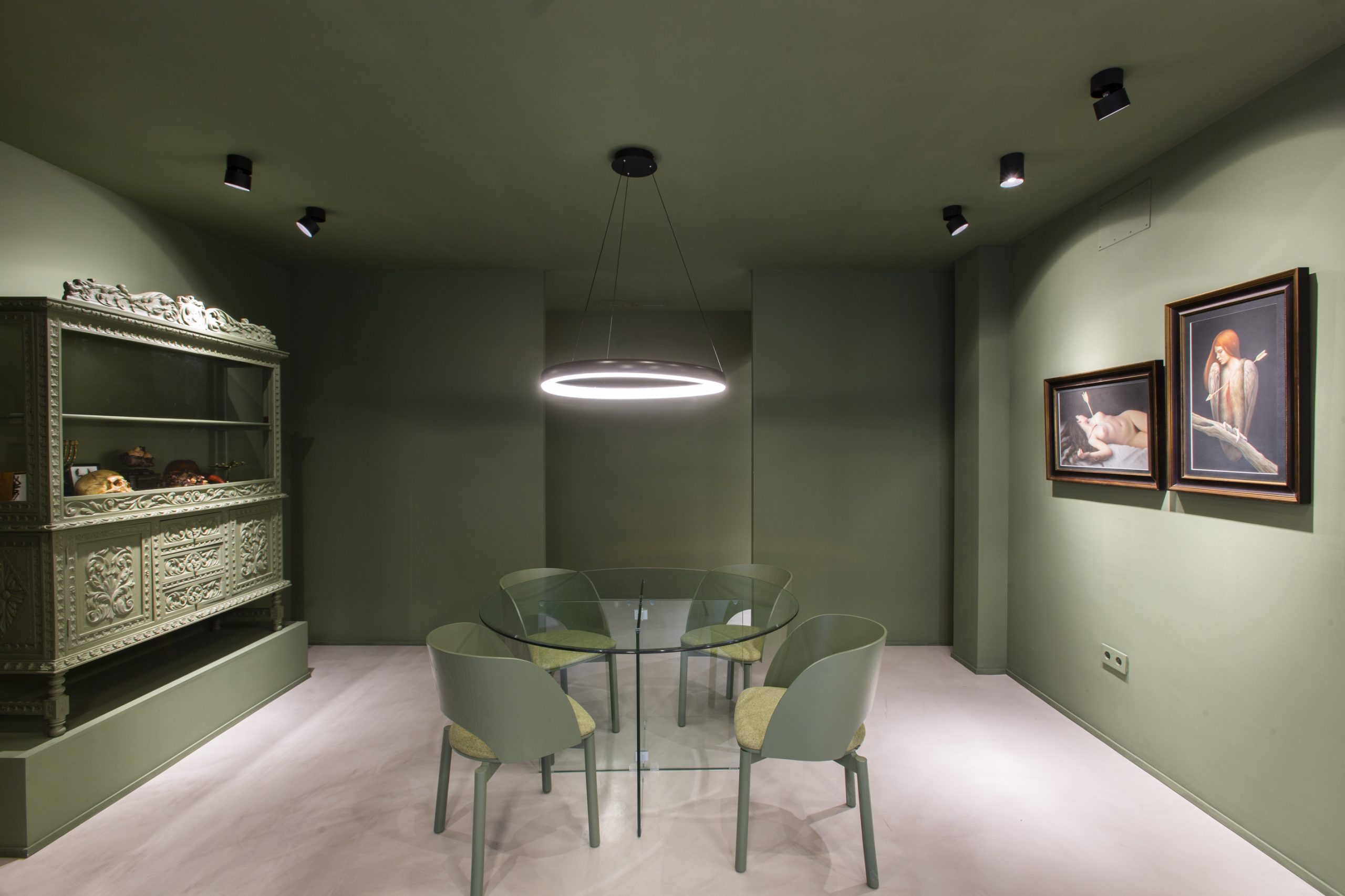 De esta manera tratamos el espacio casi como una galería de arte contemporáneo exhibiendo en sus paredes la obra de Samuel como colofón a un interiorismo que eleva materiales en principio menos nobles a otro nivel.