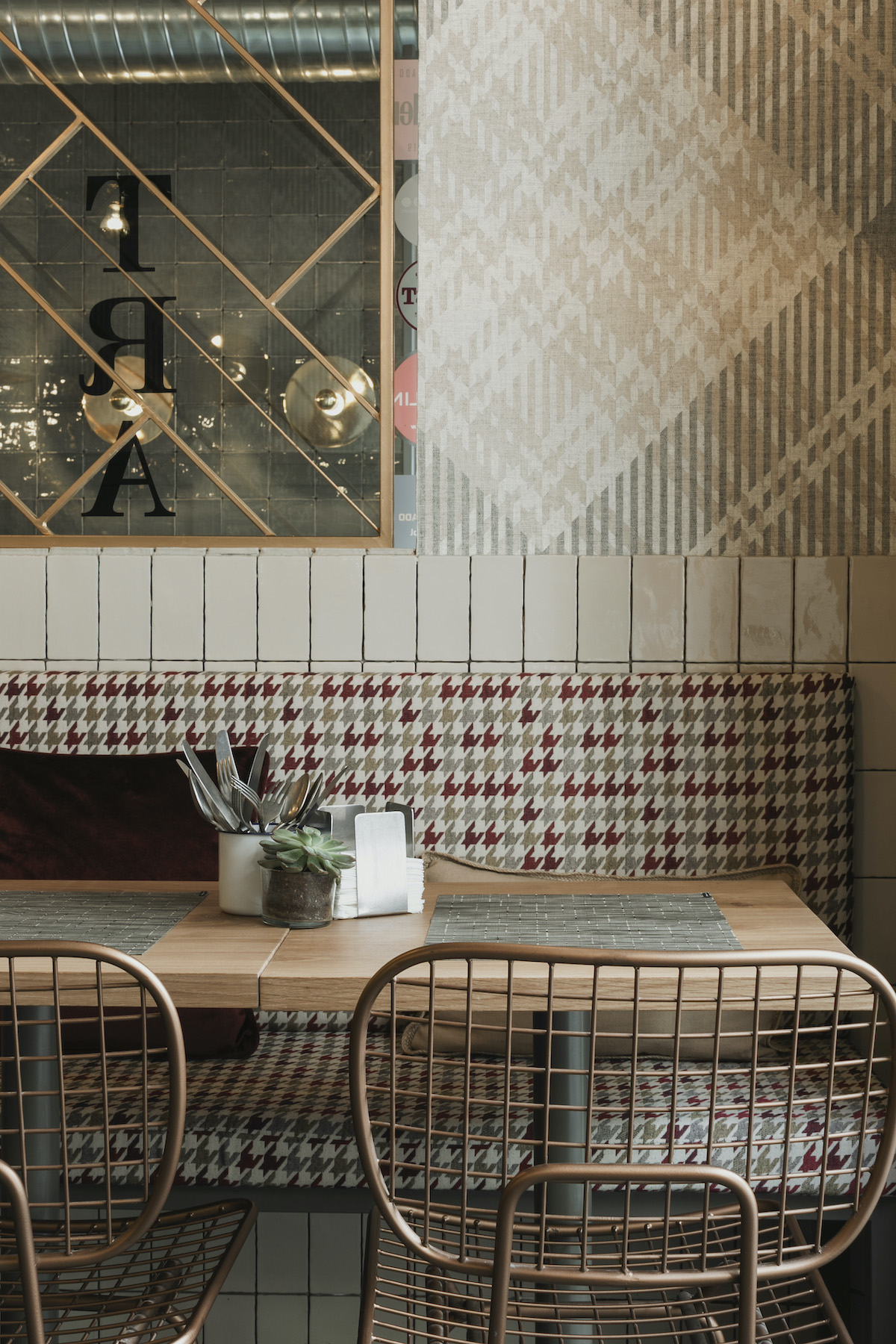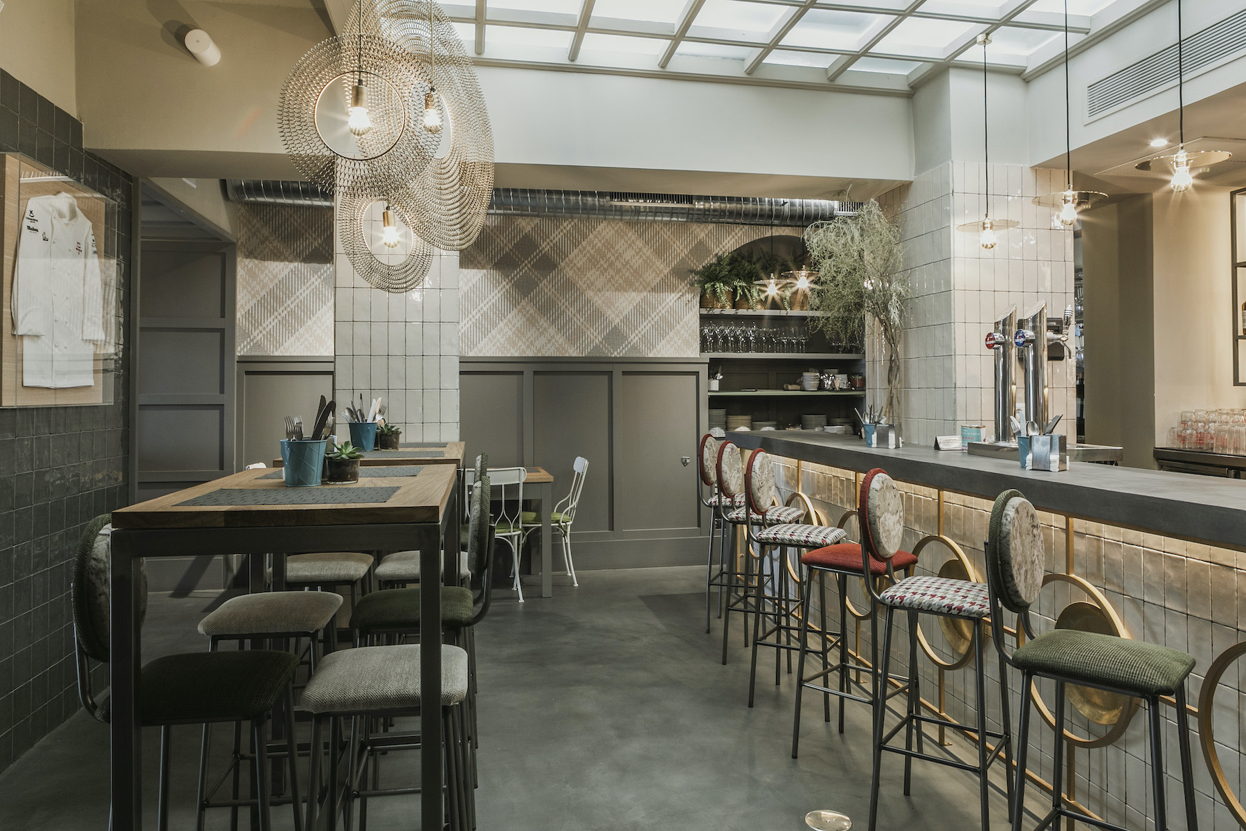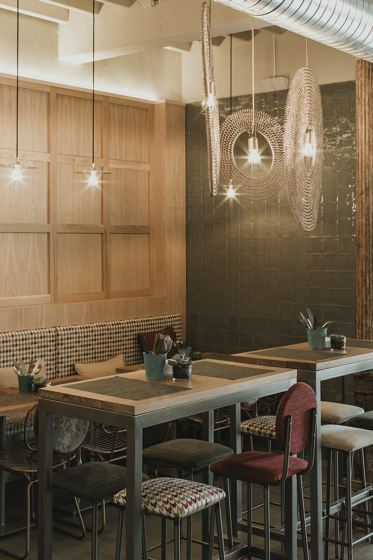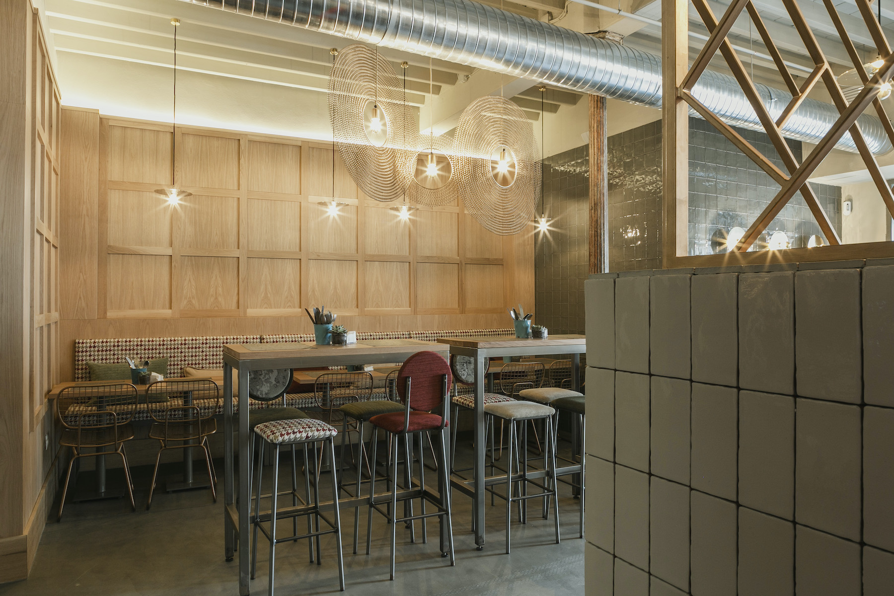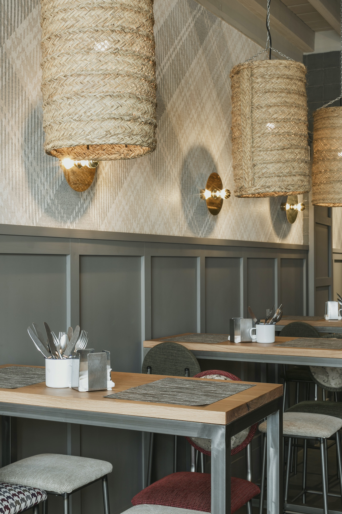 El interiorismo de Tragatá está a medio camino entre la vanguardia y la tradición con materiales nobles como la madera de roble natural, cerámicas confeccionadas a mano y textiles e iluminación de corte moderno.